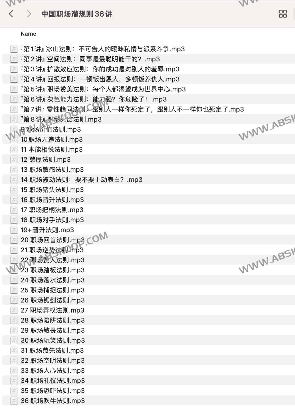 课程信息 中国职场潜规则36讲,夸克网盘课程。 课程介绍 雾满拦江的《中国职场潜规则 36 讲》是一门深入剖析中国职场文化和潜规则的课程,旨在帮助职场人士更好地理解和应对职场中的各种复杂情况。 通过这门课程,学员可以获得关于如何在职场中生存和发展的宝贵知识和策略,从而在职场竞争中占据有利地位。 课程大纲 课程下载 下载地址:夸克网盘 更多夸克网盘资源集合 更多阿里云盘资源集合 更多PikPak网盘资源合集 文章导航 性格优化课 人际关系的奥秘黄执中:35天超级说服力(完结)