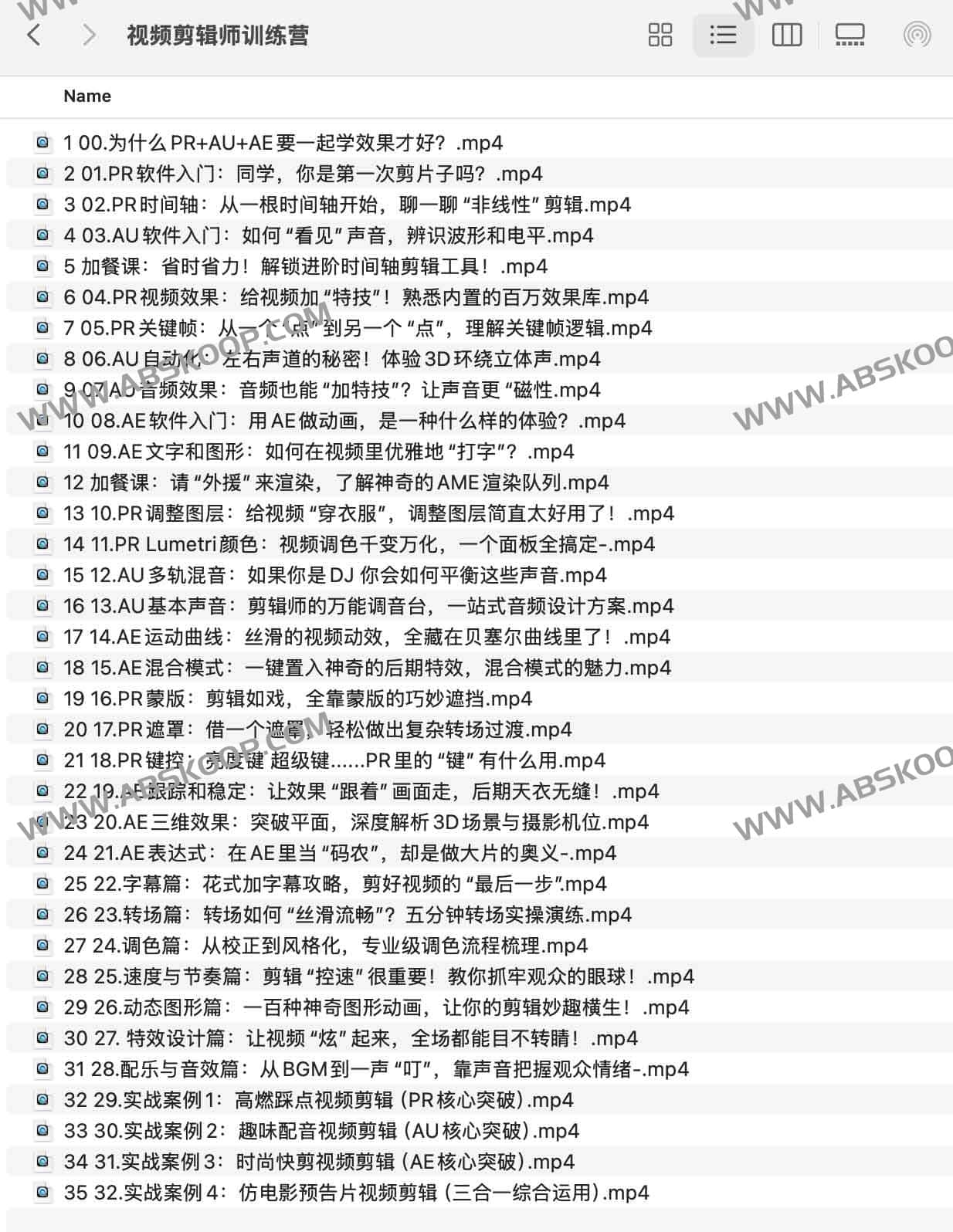 课程信息 视频剪辑师训练营,夸克网盘课程。 课程介绍 全面讲解 Premiere Pro、Audition 和 After Effects 的基础操作与技巧。课程涵盖剪辑、音频处理、特效制作及项目实战,帮助学员快速掌握视频剪辑的核心技能,提升创作水平,适合零基础学员。 课程大纲 课程下载 下载地址:夸克网盘 文章导航 日杂写真摄影师大咖小蔡一壹碟作品解析《PS国际顶级创意课程》让你脑洞大开