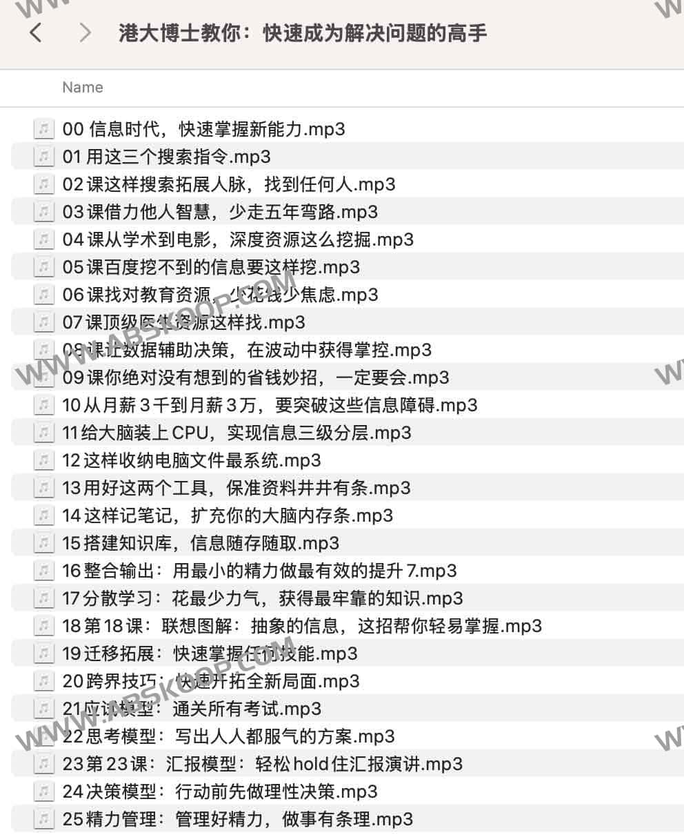港大博士教你:快速成为解决问题的高手,夸克网盘课程。