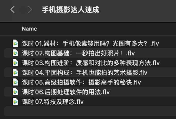 课程信息 手机摄影达人速成,夸克网盘课程。 课程介绍 课程围绕手机摄影的核心技巧展开,涵盖器材选择、构图基础与进阶技巧,帮助学员提升照片的质感和对比表现力。通过平面构成技巧探索艺术摄影的可能性,并介绍专业级拍摄与后期处理软件的使用方法,使手机摄影作品更加出色。此外,还涉及摄影特技和理念,帮助学员拓展创作思维,快速提升摄影水平。 课程大纲 课程下载 下载地址:夸克网盘 文章导航 【PS教程】PS教程-萌新系统入门课课程视频+素材从剪辑到调色0基础新手影视制作,自媒体后期核心训练课