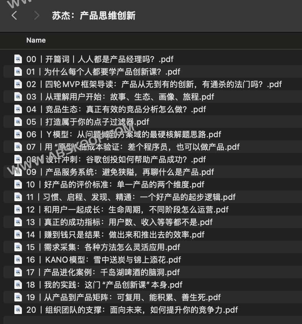 课程信息 苏杰:产品思维创新,夸克网盘课程。 课程介绍 《苏杰:产品思维创新》围绕产品从无到有的全过程,探讨产品创新的方法论。内容涵盖MVP框架、用户需求分析、竞品研究、点子筛选、Y模型解题思路、低成本原型验证、设计冲刺、产品服务系统,以及好产品的评价标准。通过生命周期运营、需求采集、KANO模型等策略,帮助产品经理优化产品进化路径,并结合实际案例和实践经验,探讨产品矩阵和团队组织,以提升竞争力,实现可持续创新。 课程大纲 课程下载 下载地址:夸克网盘 文章导航 2025年最火AI大模型DeepSeek资源资料汇总DeepSeek 从入门到精通