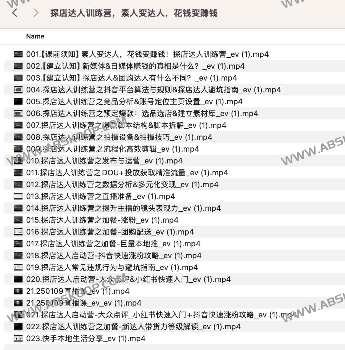 探店达人训练营,素人变达人,花钱变赚钱,夸克网盘课程。