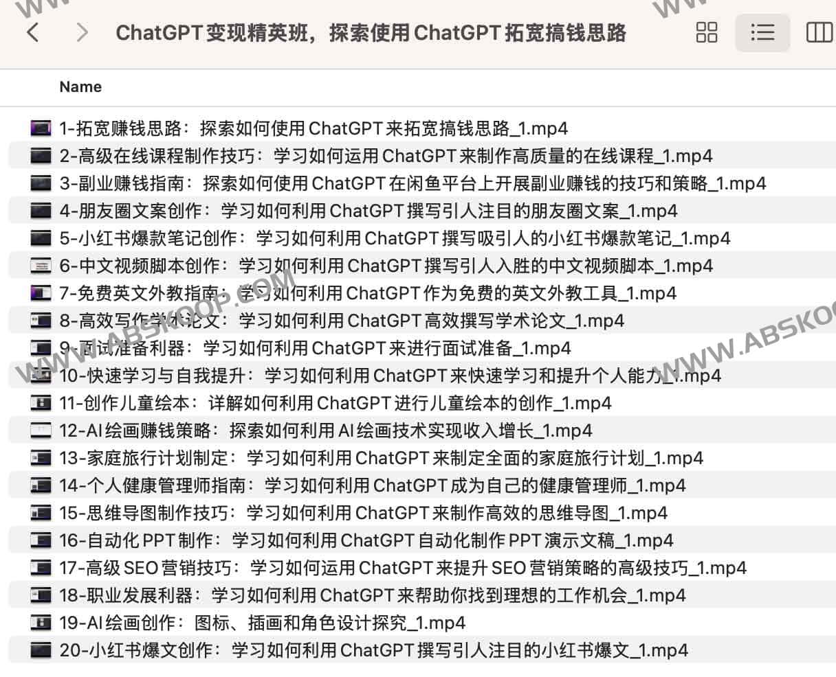 ChatGPT变现精英班,探索使用ChatGPT拓宽搞钱思路,夸克网盘课程。