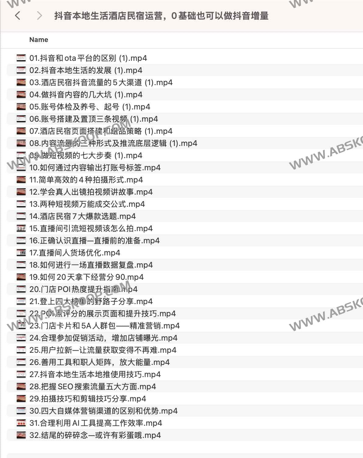 课程信息 抖音本地生活酒店民宿运营,0基础也可以做抖音增量,夸克网盘课程。这套课程为酒店民宿从业者开辟抖音营销新通路,从零开始构建线上获客体系。内容覆盖账号定位到变现转化全链路,解析抖音与OTA平台的流量差异,揭秘本地生活领域的五大流量入口。账号搭建模块详细演示主页装修技巧、置顶视频设计逻辑,结合组品策略提升页面转化率。 课程大纲 课程下载 下载地址:夸克网盘 文章导航 加菲小红书个人职业IP陪跑课引爆绝活IP训练营,14天引爆绝活,放大你的一技之长