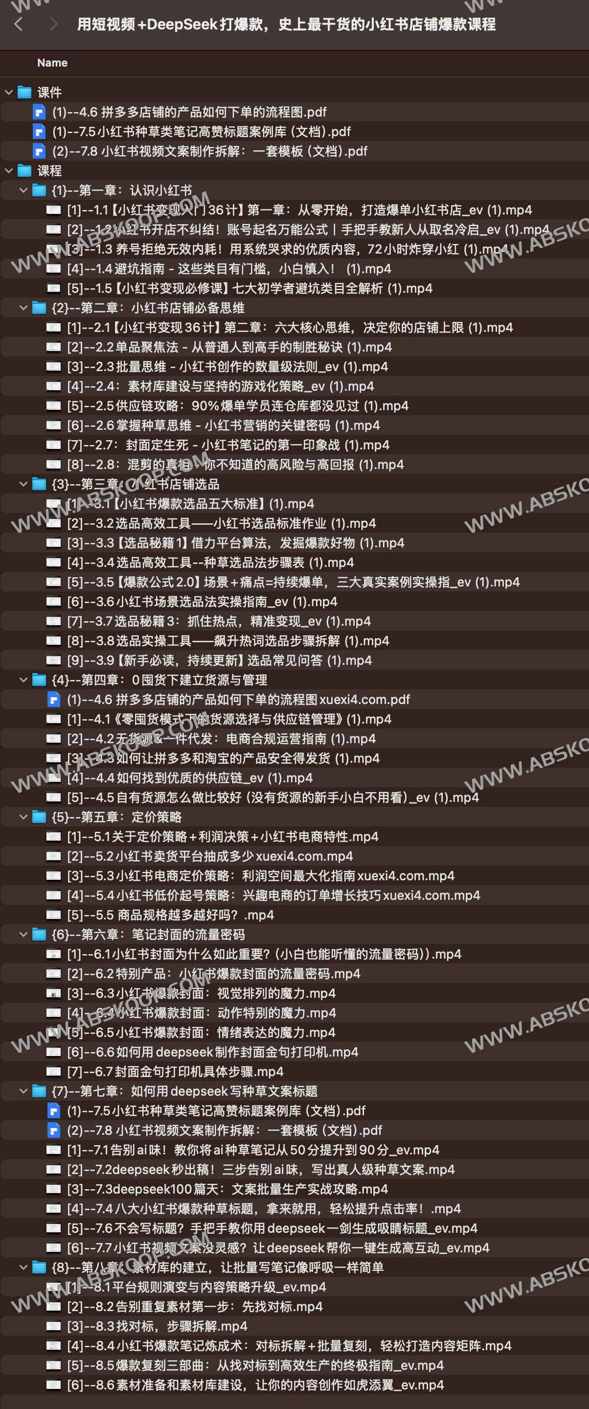 课程信息 用短视频+DeepSeek打爆款,史上最干货的小红书店铺爆款课程,夸克网盘课程。这门课程从入门、思维模型、选品、货源管理、定价、封面设计、文案撰写,到素材库搭建,全面覆盖了小红书店铺打造爆款的核心要素。课程通过实战案例与工具拆解,让新手迅速摸清账号起名、养号、避坑、单品聚焦、批量生产、高效选品等关键环节,结合 Deepseek 提供的封面与标题自动化方案,实现从零到爆单的闭环路径。 课程大纲 课程下载 下载地址:夸克网盘 文章导航 玩转 DeepSeek 自媒体 IP 训练营小红书电商带货课2期,月利润20个的小红书电商的有货源,无货源,虚拟产品,付费投流等整套玩法