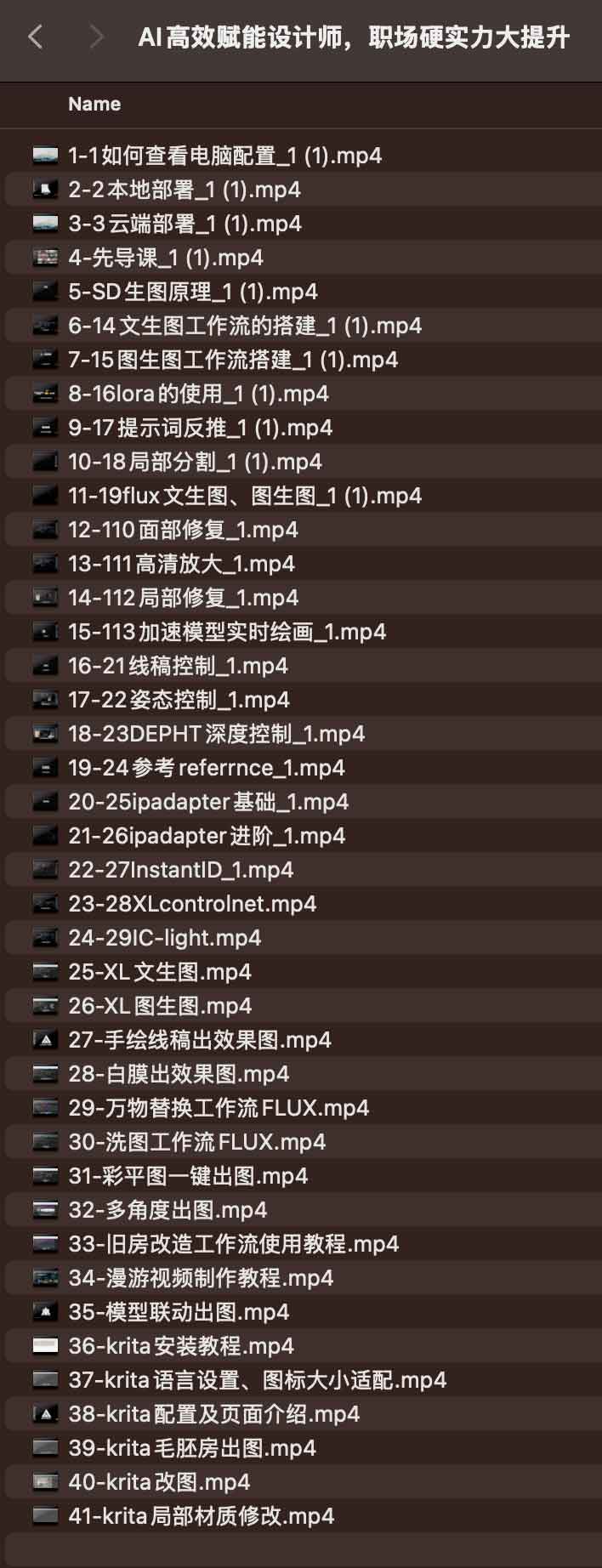 实战环节包含旧房改造全流程、漫游视频制作及多模型联动方案。Krita专题从安装配置讲起,结合毛坯房出图、局部材质修改等案例,打通AI与数字绘画的协作链路。课程涵盖34个技能模块,将前沿AI能力转化为设计生产力。