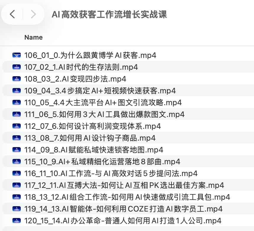 AI高效获客工作流增长实战课,这门实战课由15个模块组成,覆盖从认知策略到实际落地、从引流变现到全流程自动化的完整路径。学员将系统掌握AI时代的商业思维和变现方法,学会借助短视频与图文内容快速获取目标流量,构建高利润变现体系,并通过私域运营实现用户留存与复购。最终学会设计AI工作流与智能体,打造1人公司级别的办公革命体验。