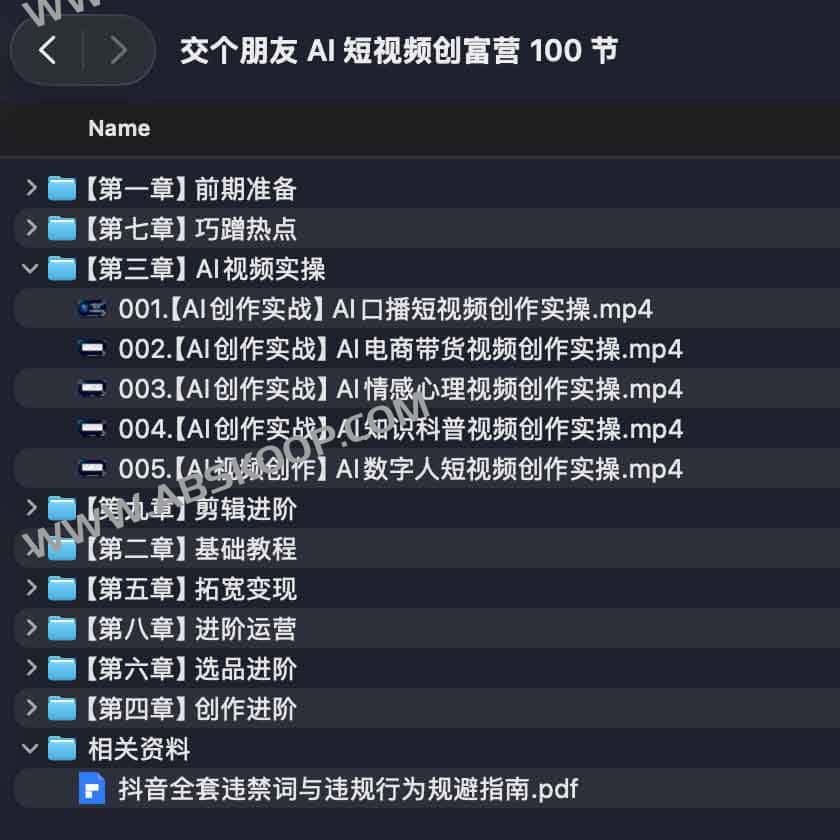 交个朋友 AI 短视频创富营 100 节课程概览
