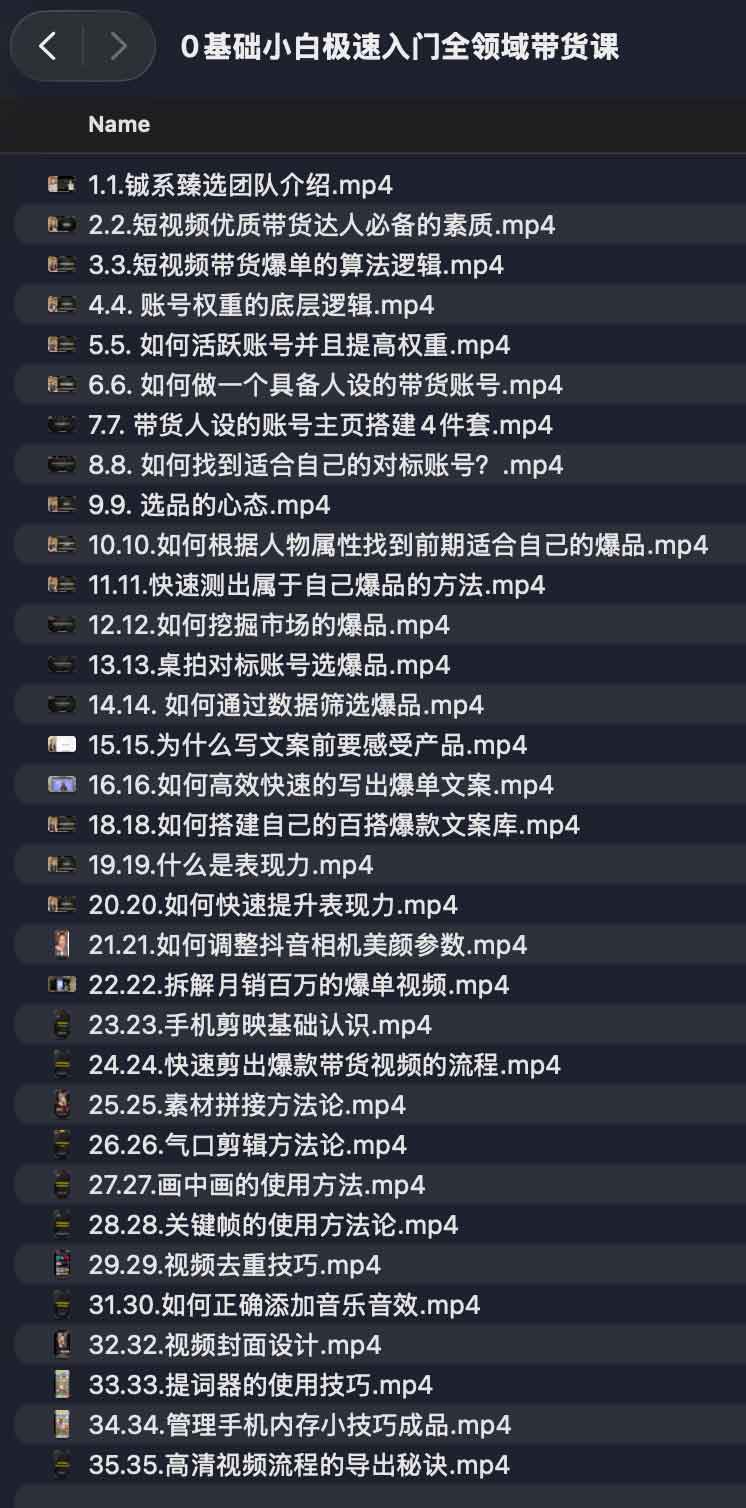 学习地址:0基础小白极速入门全领域带货课