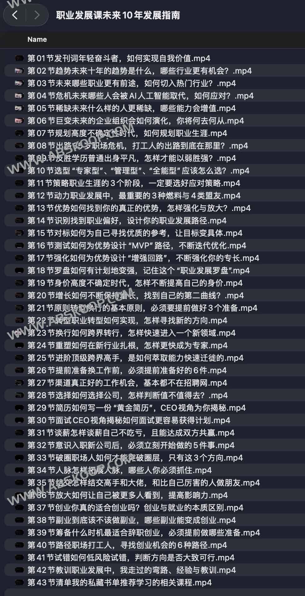 职业发展课未来10年发展指南,这套职业发展课程面向渴望在未来十年中持续进阶和突破的职场人群。通过深入剖析市场变化与技能需求,帮助学员确立清晰的职业目标,构建可执行的发展路径。课程不仅聚焦行业趋势,还覆盖个人能力打造、职场生存策略与创业探索,全程共43节。