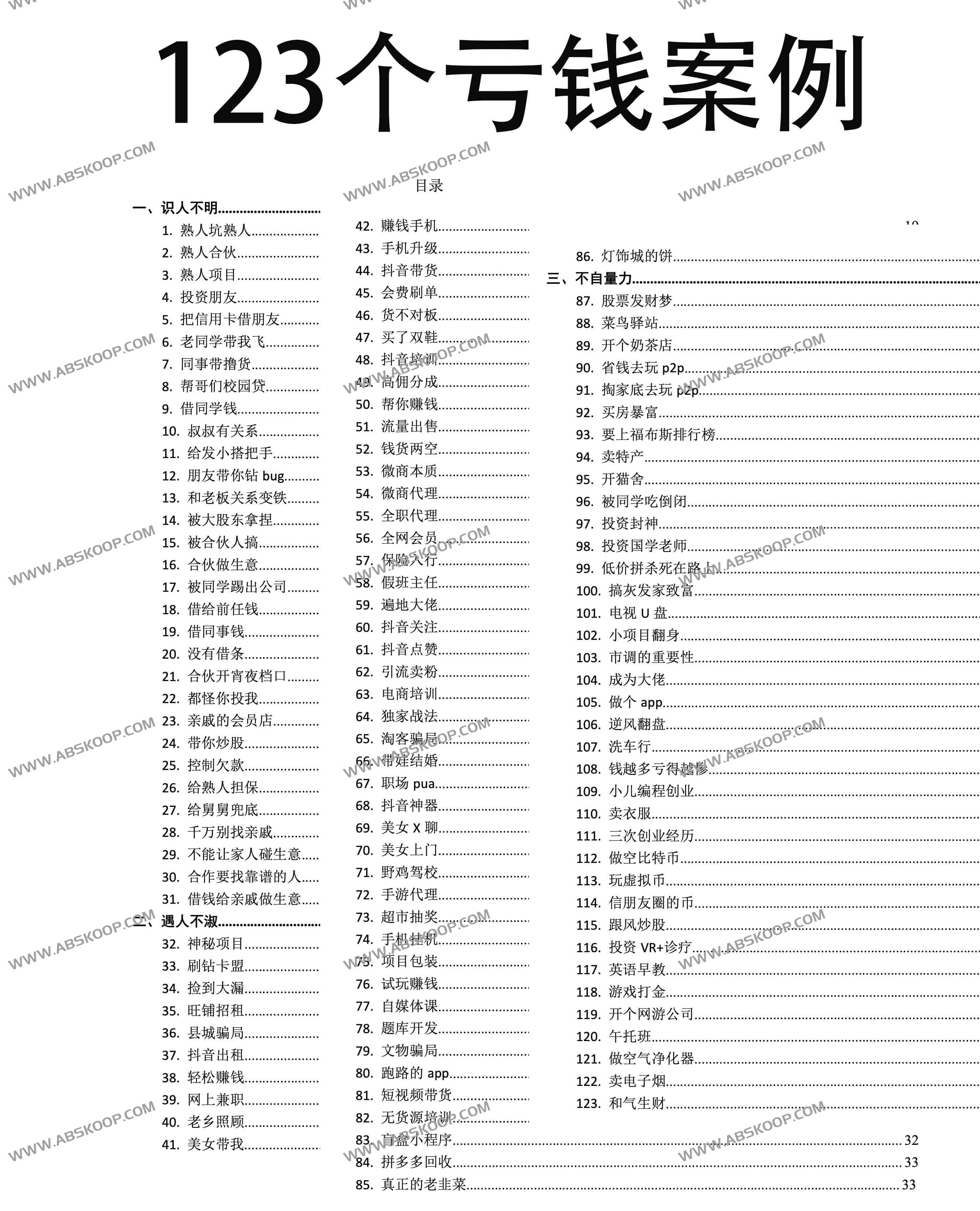 123个亏钱案例(第一版)目录