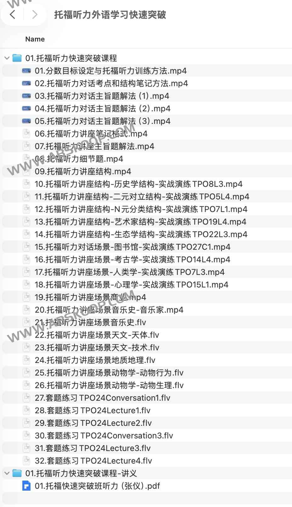 托福听力外语学习快速突破,这套《托福听力快速突破课程》围绕“目标设定—结构化笔记—高频场景—实战演练”搭建学习路径。素材覆盖对话与讲座两大板块,系统训练主旨题与细节题,配套TPO套题演练与讲义,帮助考生在较短周期内建立稳定得分的听力体系。