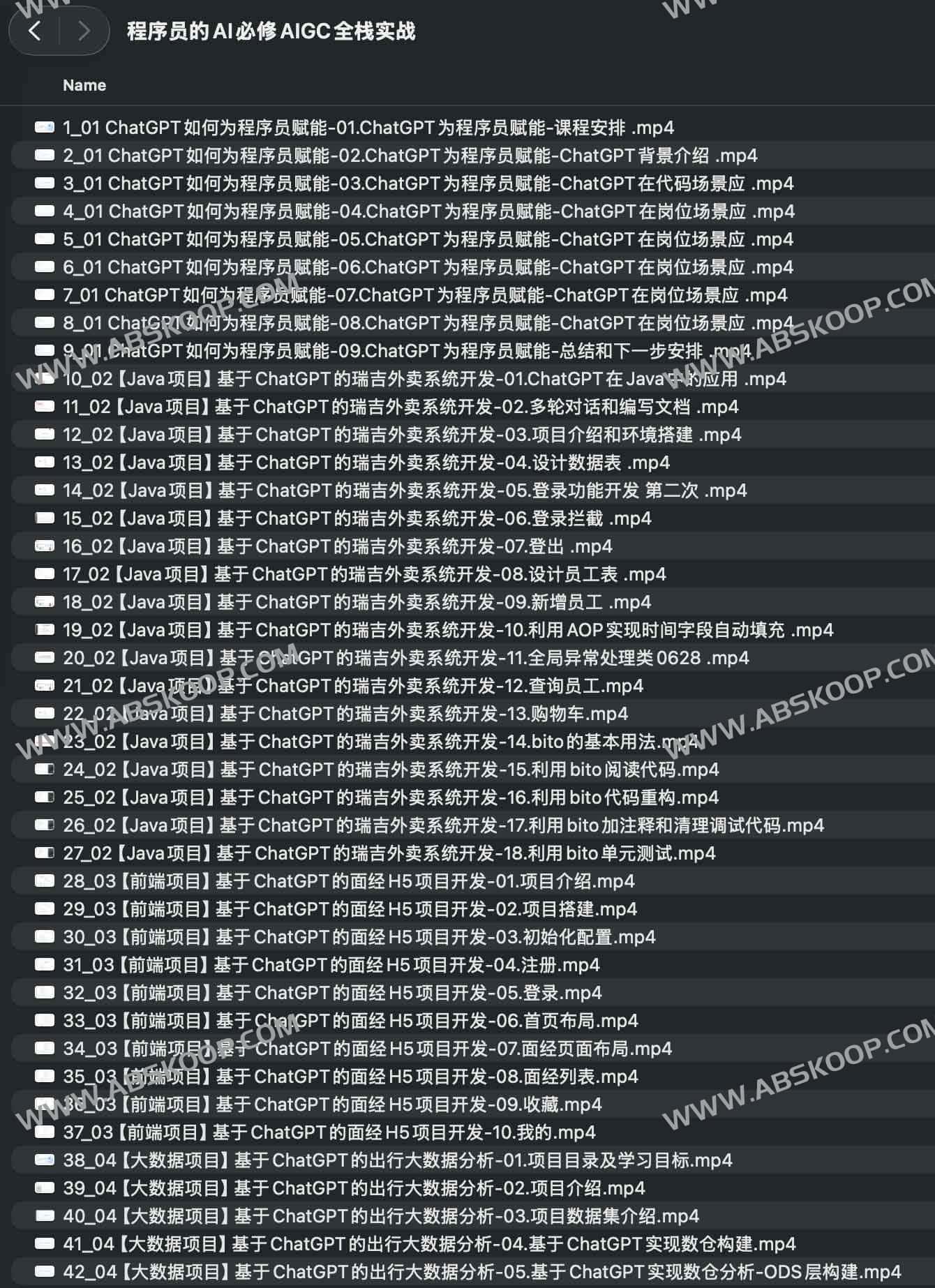 程序员的AI必修AIGC全栈实战,本课程聚焦 人工智能与全栈开发的融合应用,通过ChatGPT赋能,让程序员能够在Java、前端、大数据、人工智能和自动化测试等多领域掌握实战技能。课程不仅教授核心技术,还强调如何将AI工具应用到真实项目开发中,帮助学员全面提升工程效率与落地能力。