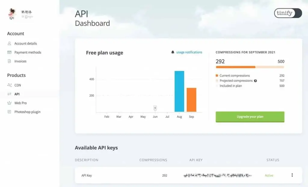 - 到这里注册API Key. 你也可以在打开TinyPNG4Mac的时候注册,免费用户每月500张配额。