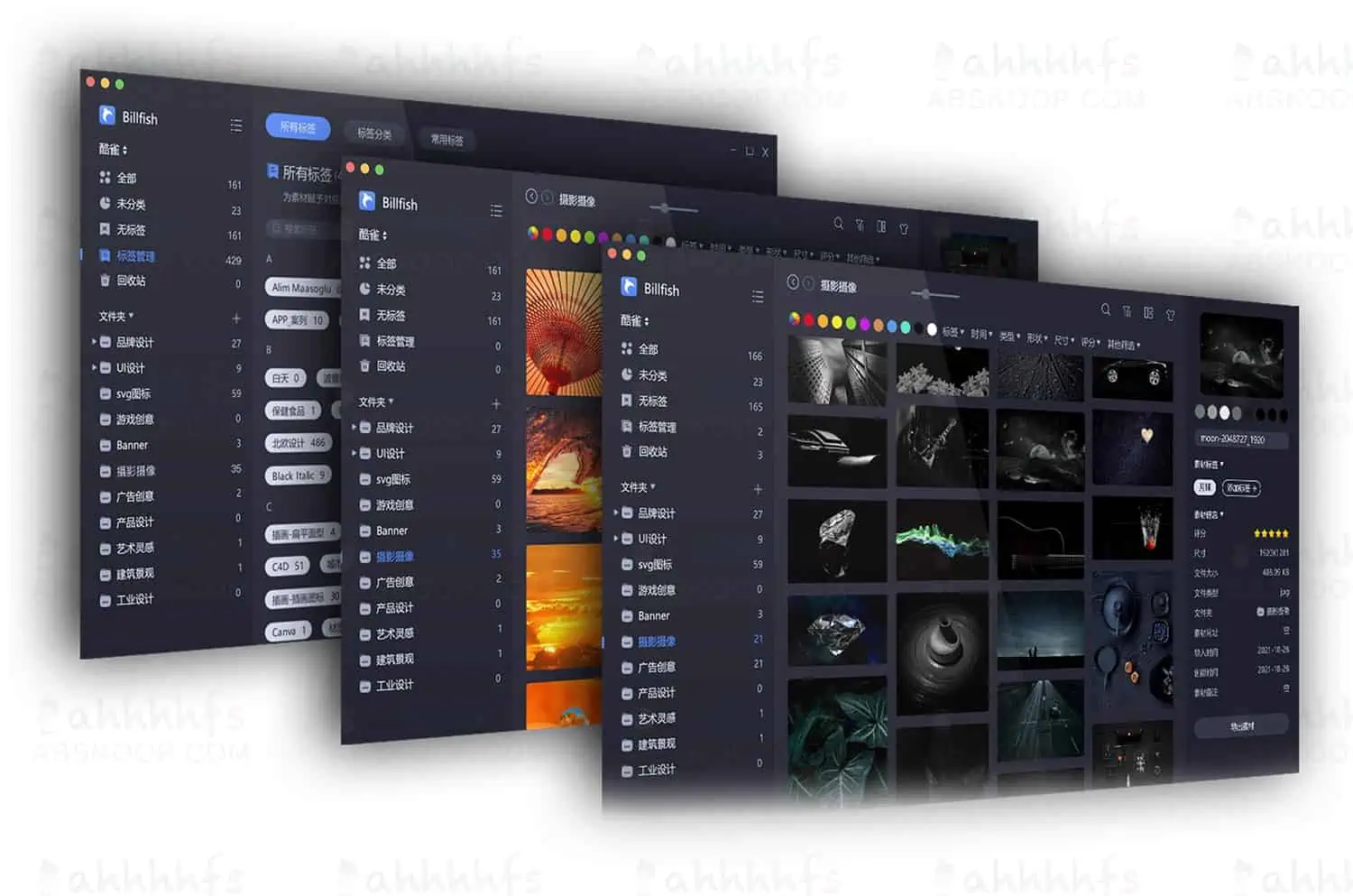 Billfish是专为设计师打造的素材管理工具,可以高效的整体电脑的各类素材:支持PNG、JPG、PSD、AI、GIF、SVG、EPS、CDR等超过61种文件格式。与著名收藏管理软件 Eagle(授权费用199RMB) 的功能几乎无异,但 BillFish 是完全免费的,并且支持Win和Mac两大平台,两个平台的版本都是免费的,Billfish素材管理工具可以快速、轻松的管理素材,让你拥有更多的时间专注于设计本身。