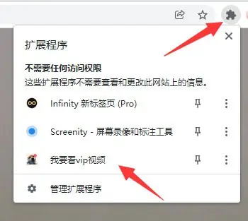 注意,安装成功后,谷歌浏览器会将新安装的插件图标自动隐藏到工具栏中,你可以点击扩展管理图标展开查看。