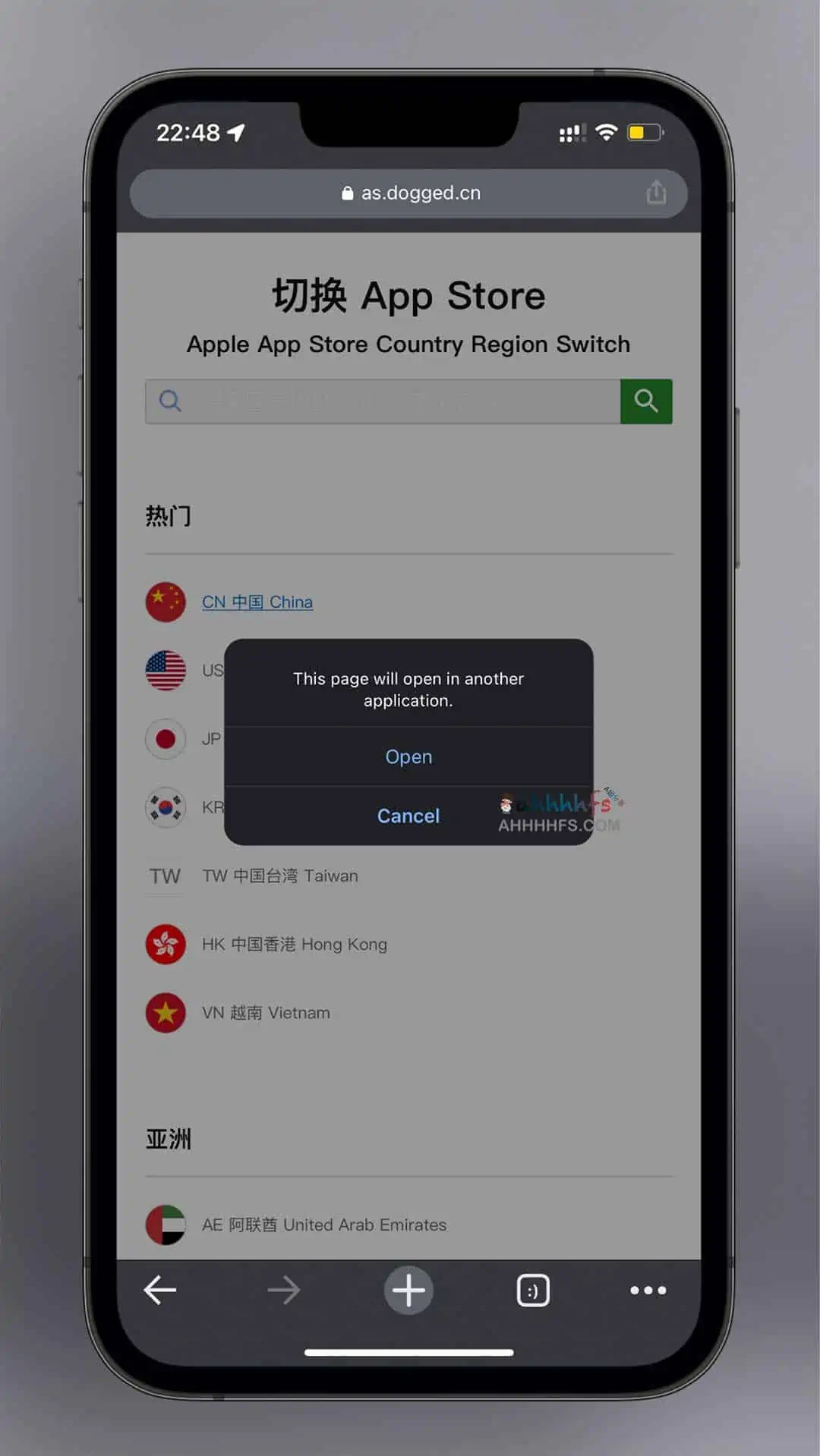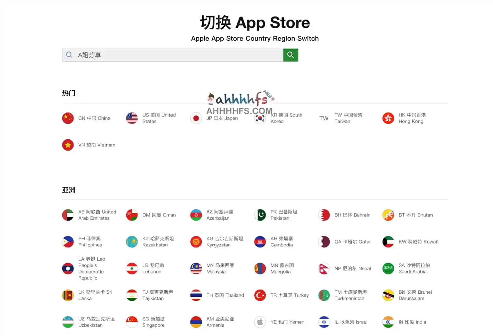 其实是一个网站,打开网站就能看到全球各个国家和地区,想看那个国家地区的苹果商店内容,搜索或者直接找到点击名字,在弹窗点击Open即可跳转到苹果应用商店,完成苹果应用商店国家地区切换,不过由于Apple的原因,切换仅支持查看内容,如果需要下载内容的话,应用商店会自动跳转到已登录的Apple账号所在区域进行下载的。