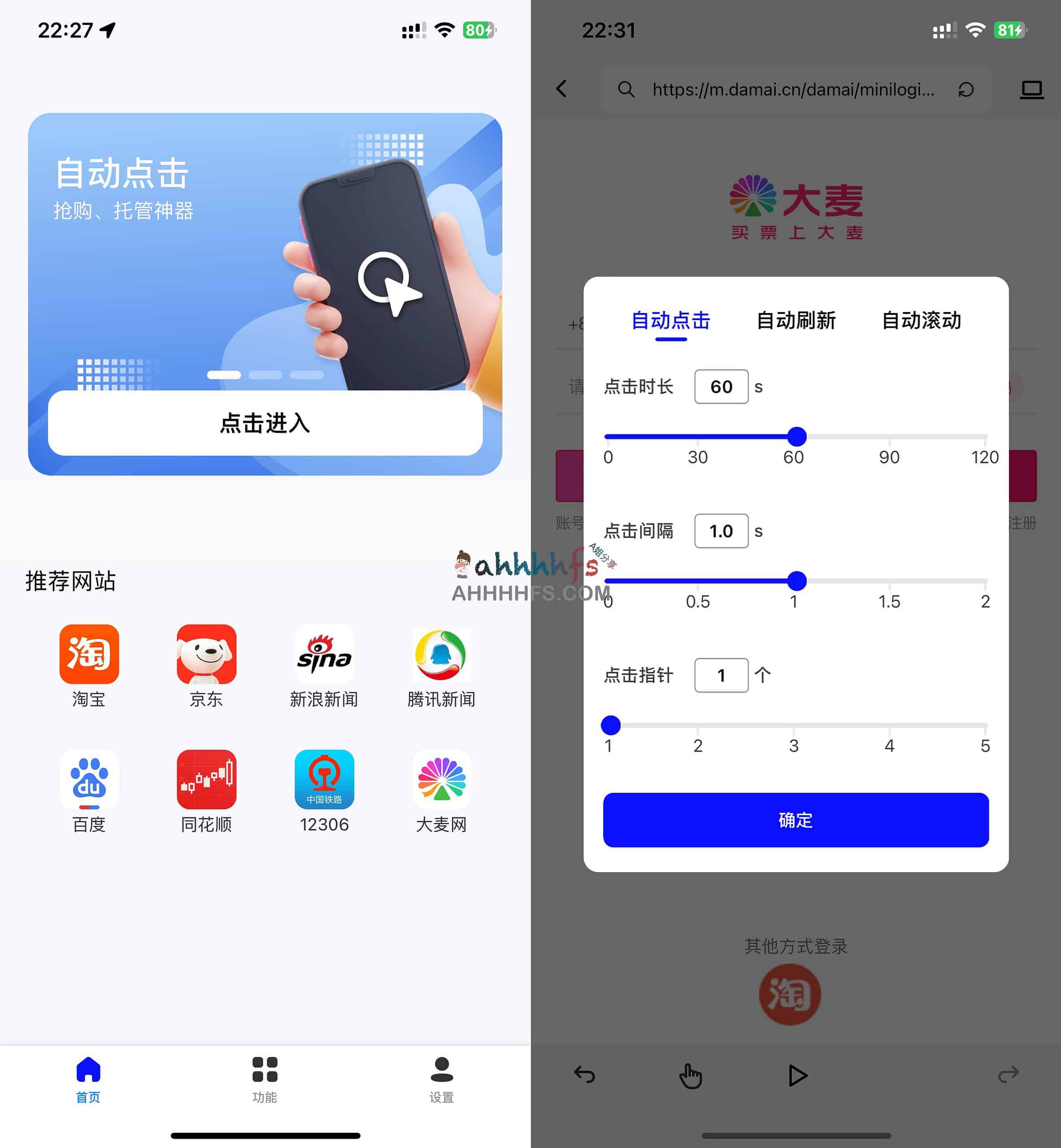 Auto Clicker – Automatic Tap +是一款iOS端的免费自动点击工具、抢购、抢票小助手,可以轻松模拟人手进行连点、滑动等自动操作,让你的操作更加高效便捷。 使用方便,适合各种场景。 例如淘宝抢购、京东抢购、12306抢购和大麦网抢购等等,其实主要的原理是打开网页版进行模拟点击,不过有个问题是软件余个广告哈哈,感兴趣的同学可以下载试试。