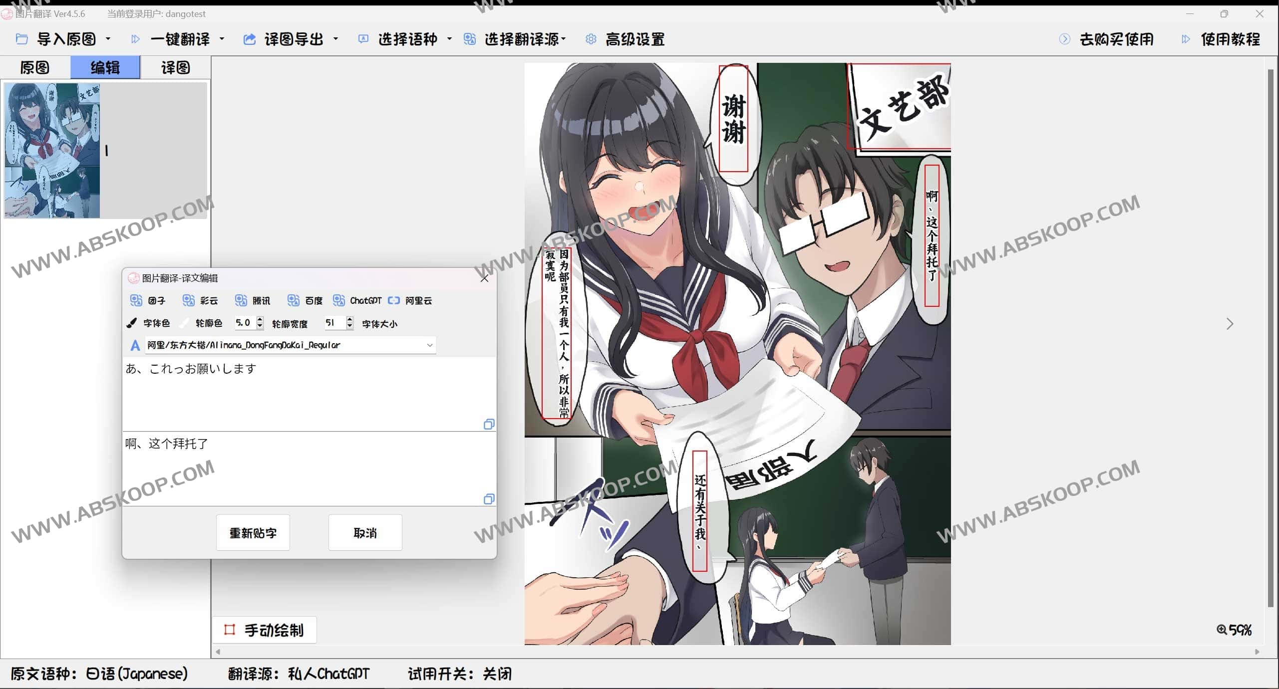 团子翻译器是一款基于OCR的生肉翻译软件 翻译器(集成ocr与翻译功能的屏幕识别软件),通过OCR识别屏幕特定范围内的文字,然后将识别到的文字调取各种翻译源,并实时输出翻译结果,可以帮助理解大部分英文/日文游戏。目前支持日文、英文、韩文、俄文,已支持3种OCR源和9种翻译源。