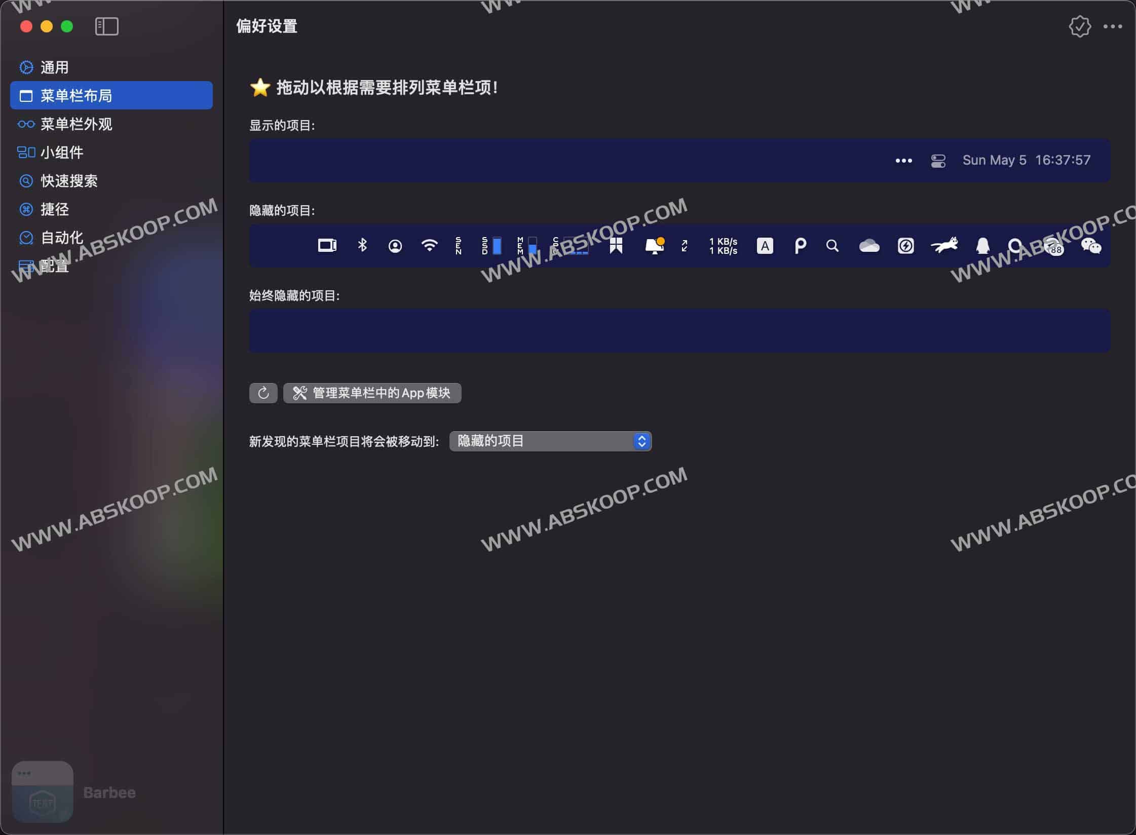 • 在某些情况下自动隐藏或显示菜单栏项目。
