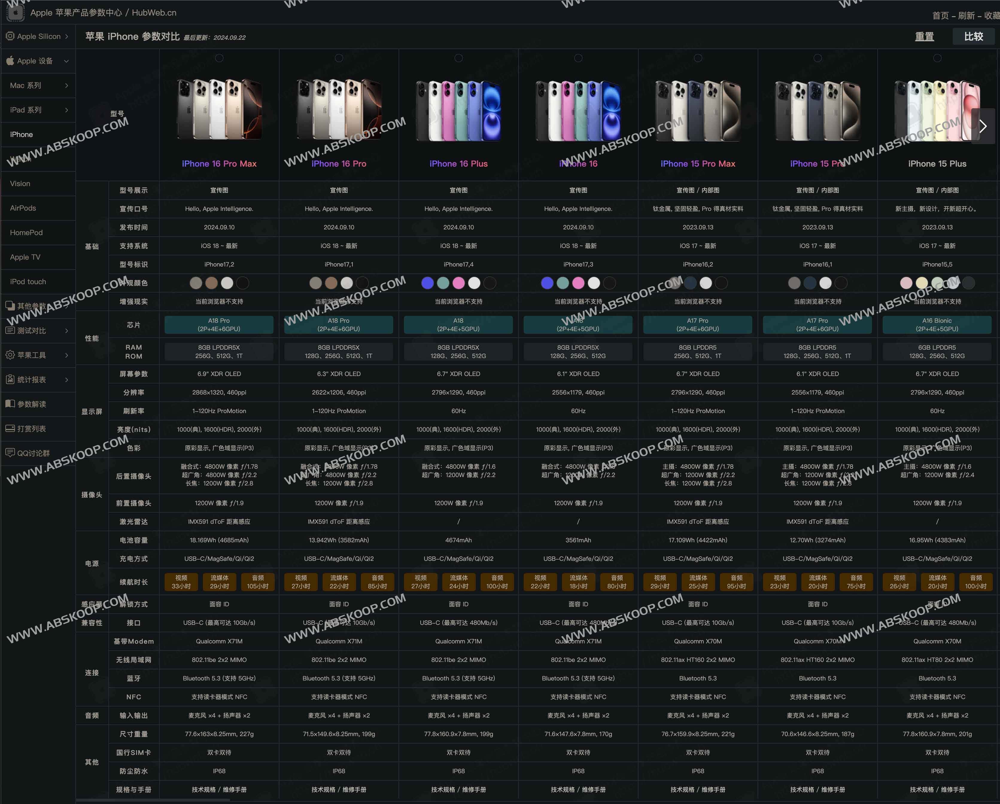 Apple 苹果产品参数中心:https://hubweb.cn/
