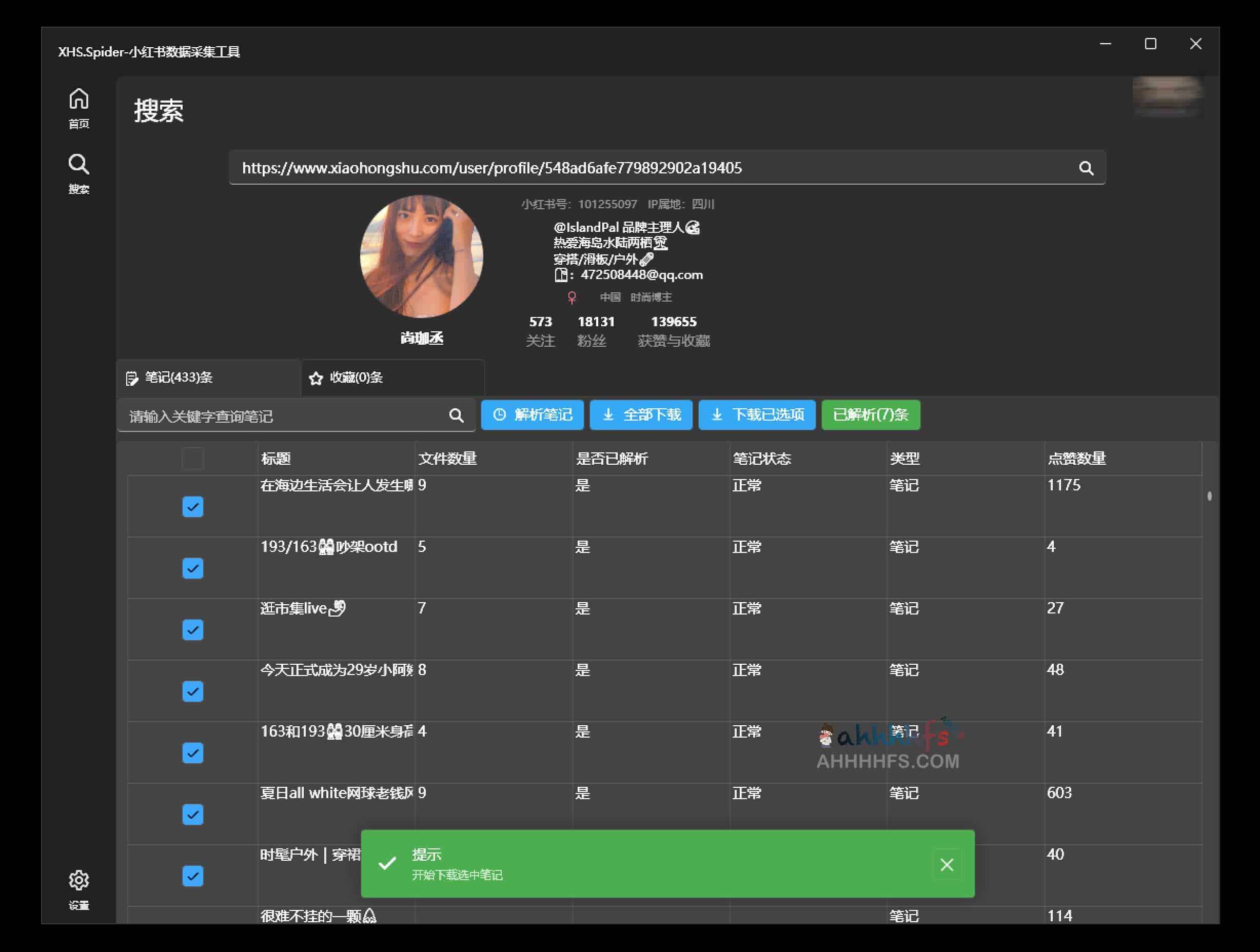 XHS.Spider是一款免费颜值超高的小红书数据采集工具,支持小红书笔记批量下载、视频提取、图片去水印,而且使用比较简单,只需要复制笔记链接或者用户主页链接即可,能够批量解析下载个人收藏的笔记或者其他用户主页笔记、收藏,解析下载的笔记也按照文件夹打包,非常整齐。XHS-Spider依托于.Net 6.0开发完成,你需要安装.Net 6.0运行时才能运行它,第一次安装运行时有提醒,HS-Spider目前仅支持windows操作系统,其他操作系统不支持。工具仅用于学习使用,学习webview2、wpf-ui用。