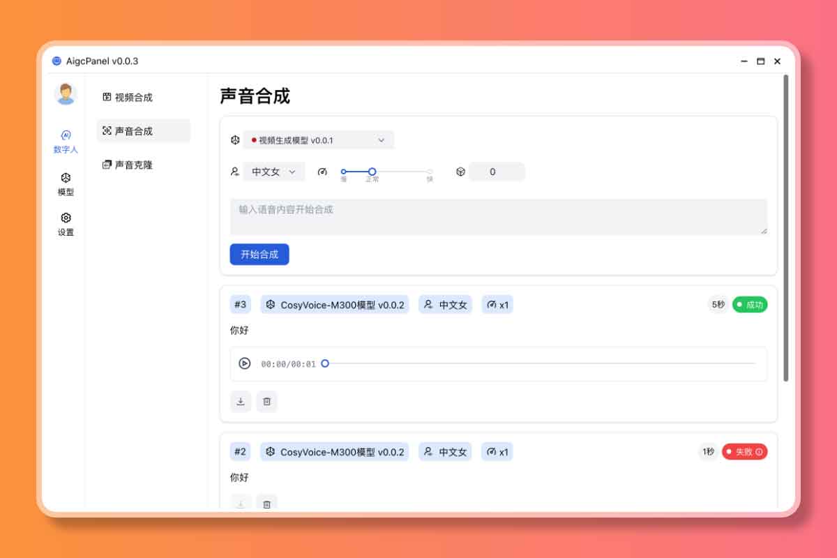 AigcPanel是一款开源简单易用的一站式的AI数字人系统,小白也可使用,支持视频合成、语音合成、语音克隆等功能,旨在简化本地模型管理并提供便捷的AI模型使用体验。它允许用户轻松导入、启动和管理多个AI模型,并通过智能音视频同步优化,提供更高效的工作方式。AigcPanel支持语音克隆和合成,能够重塑声音并实现个性化语音,还提供视频画面与声音的口型匹配。系统具有国际化支持(包括简体中文和英语),并具备高效的模型管理功能,如模型日志查看和性能优化,帮助用户更好地部署和调优AI应用。