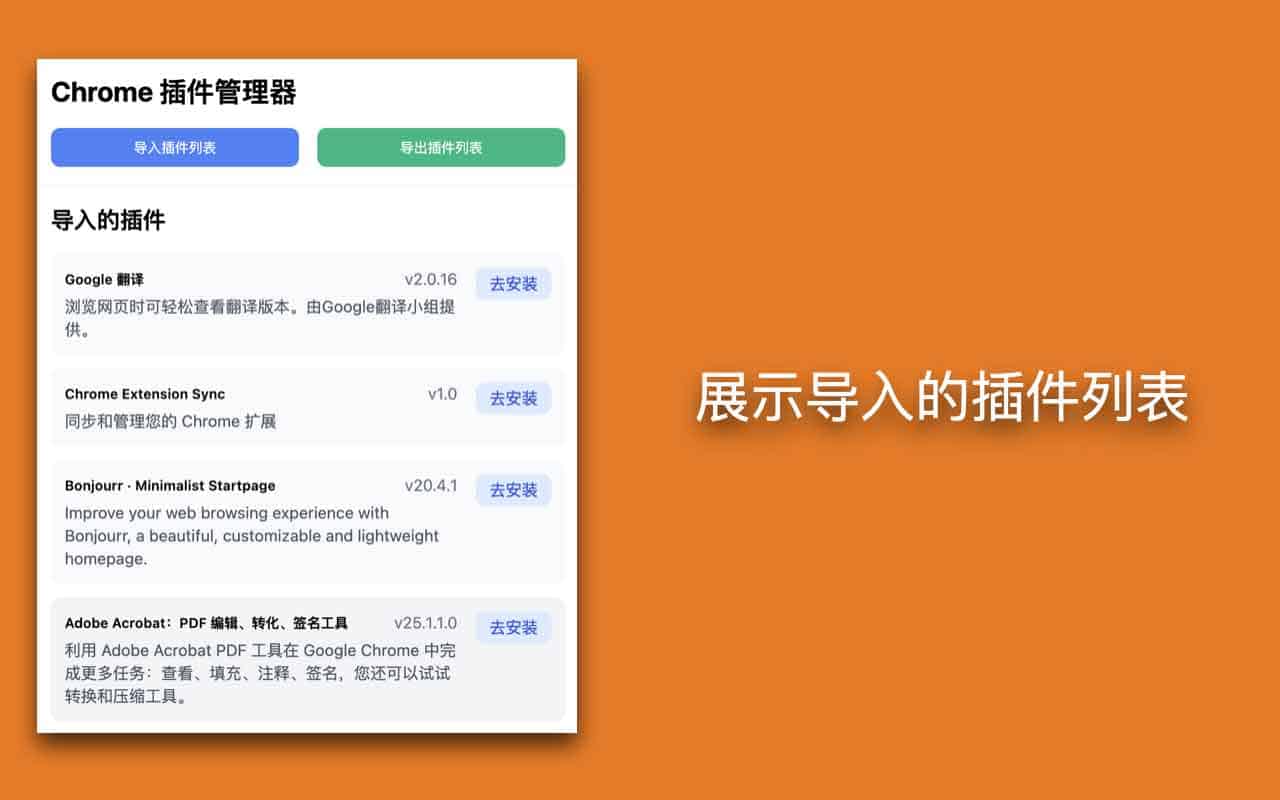 Chrome Extension Sync 是一款用于 Chrome 扩展同步和管理的工具,帮助用户轻松导入、导出和比较不同 Google 账号下的插件列表。通过这款工具,用户可以快速将主账号中的所有插件导出为 JSON 文件,并在新账号下直接导入安装,免去手动搜索和逐个安装的麻烦。对于需要在多个账号间切换的用户,特别是在不同项目中使用多个浏览器窗口的情况下,这款工具极大提升了效率,一次性解决了插件同步和管理的问题。