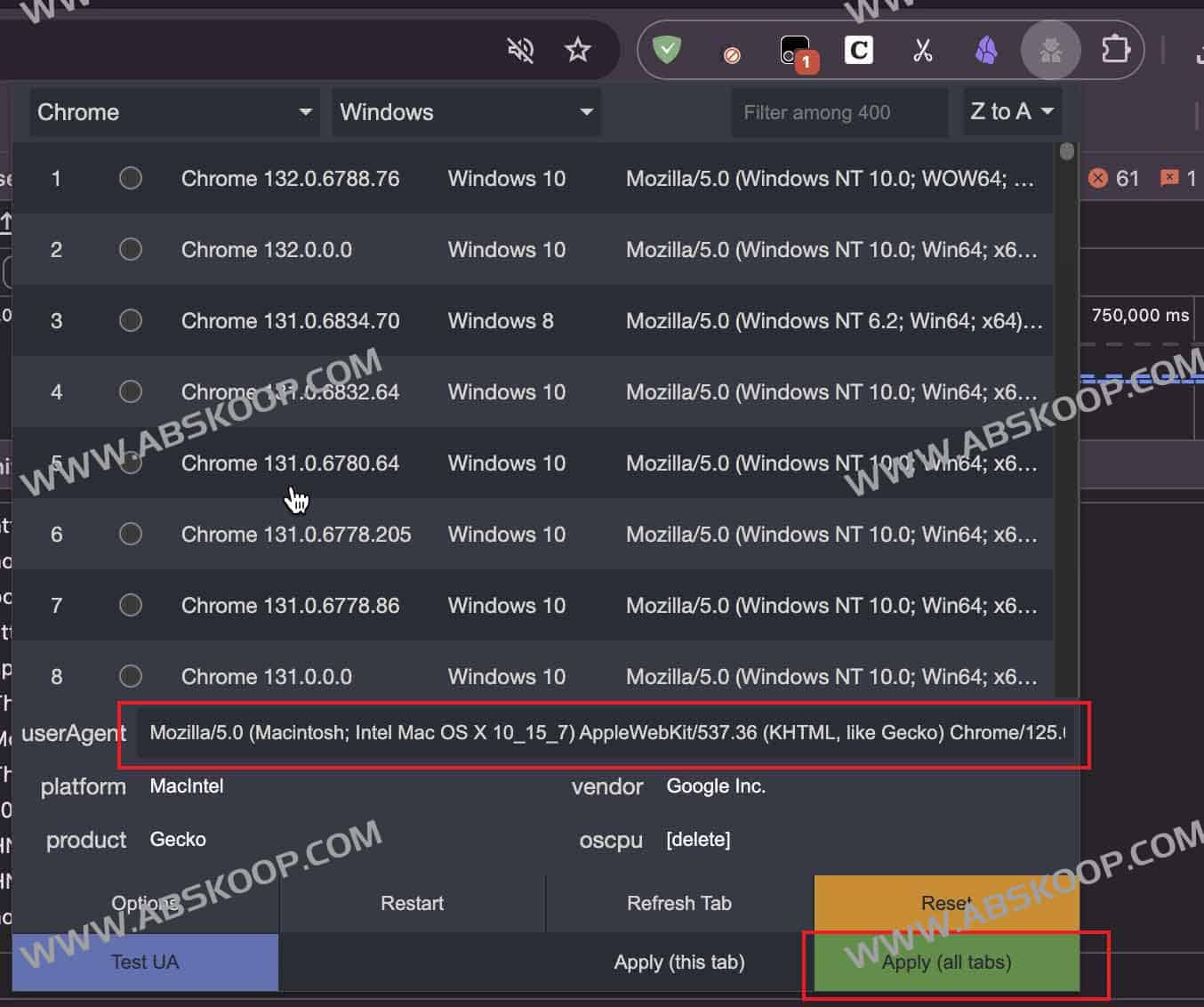 填入 User-Agent 后,点击 Apply(all tabs) 刷新 115 网盘页面即可生效。
