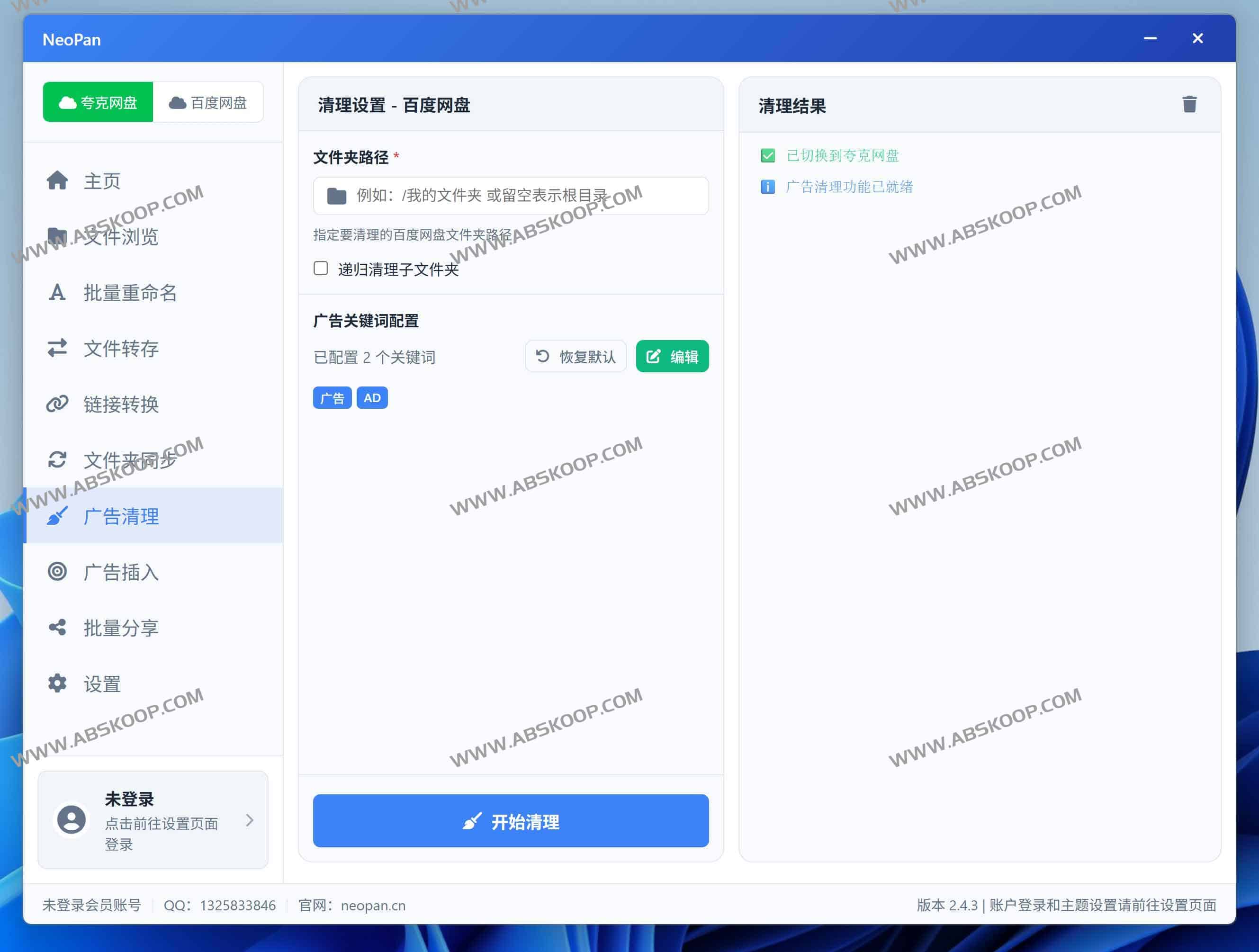 • 广告清理:智能识别并清除网盘中的广告文件,支持自定义关键词。