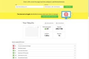 分别是Performance grade(评级),Load time(网站打开时间),Faster than(和其它网站对比),Page size(网站大小),Requests(请求数)和Tested from(测试节点)。