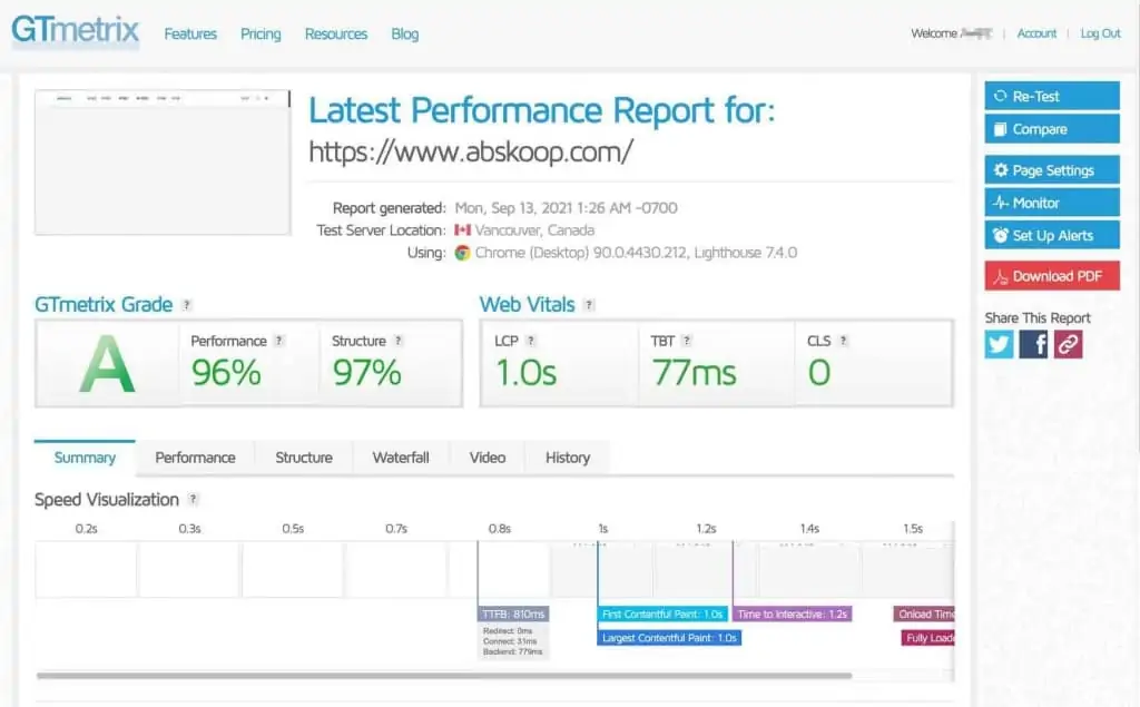GTmetrix是我最喜欢的用的网站速度分析工具,被很多大公司推荐使用,这些大公司包括PayPal,狗爹,NBC,耐克,惠普。