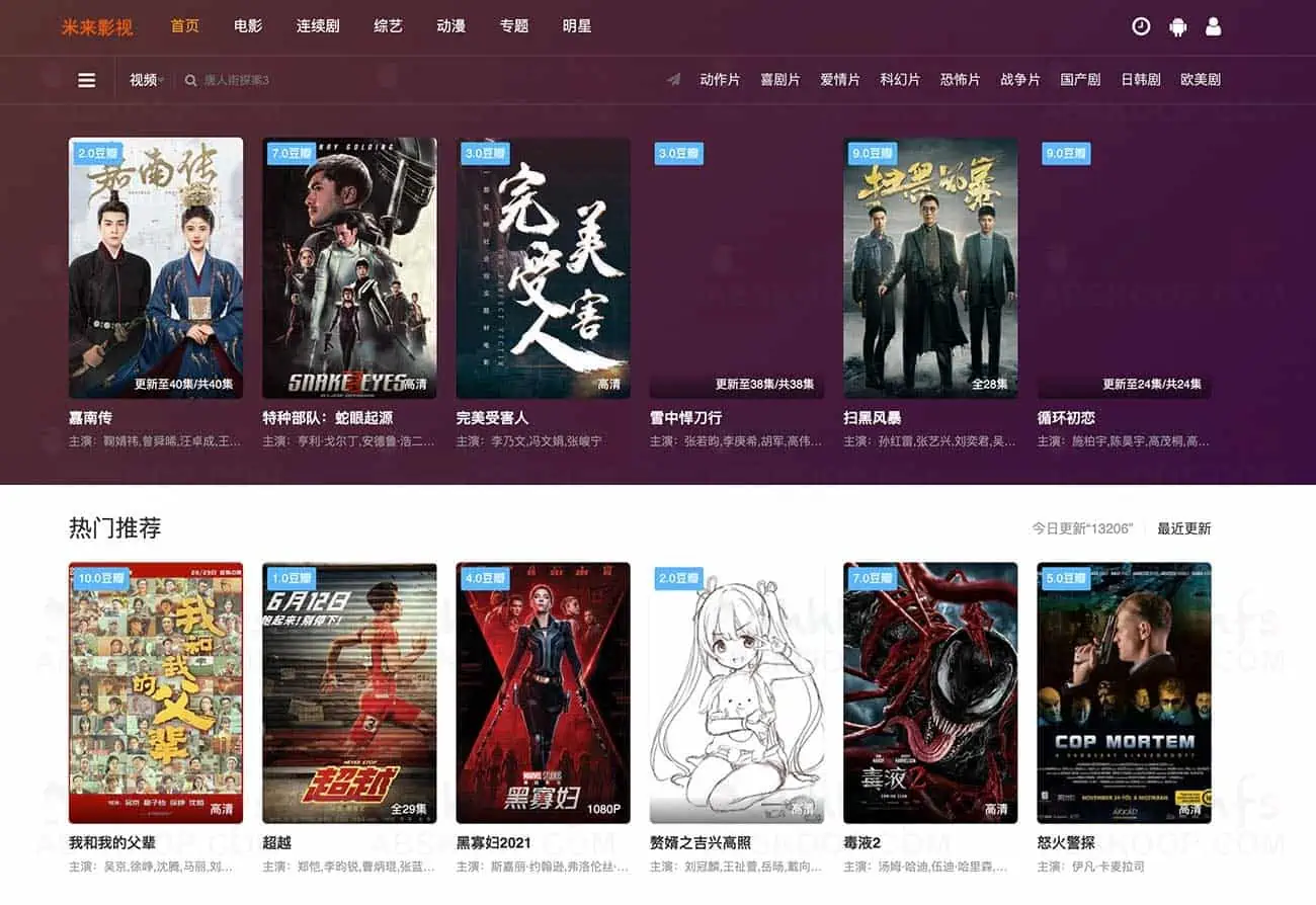 又找到一个影视大全免费追剧神器:米来影视,有在线网站和app,也支持安卓TV版,包含港澳台国内外的电视、电影、综艺、动漫等等类型的剧,还有专题和明星集合,一键快速找片。在线加载超快,支持弹幕,看了一下有不小已经在院线上映的电影可以在线观看,目前无广告。