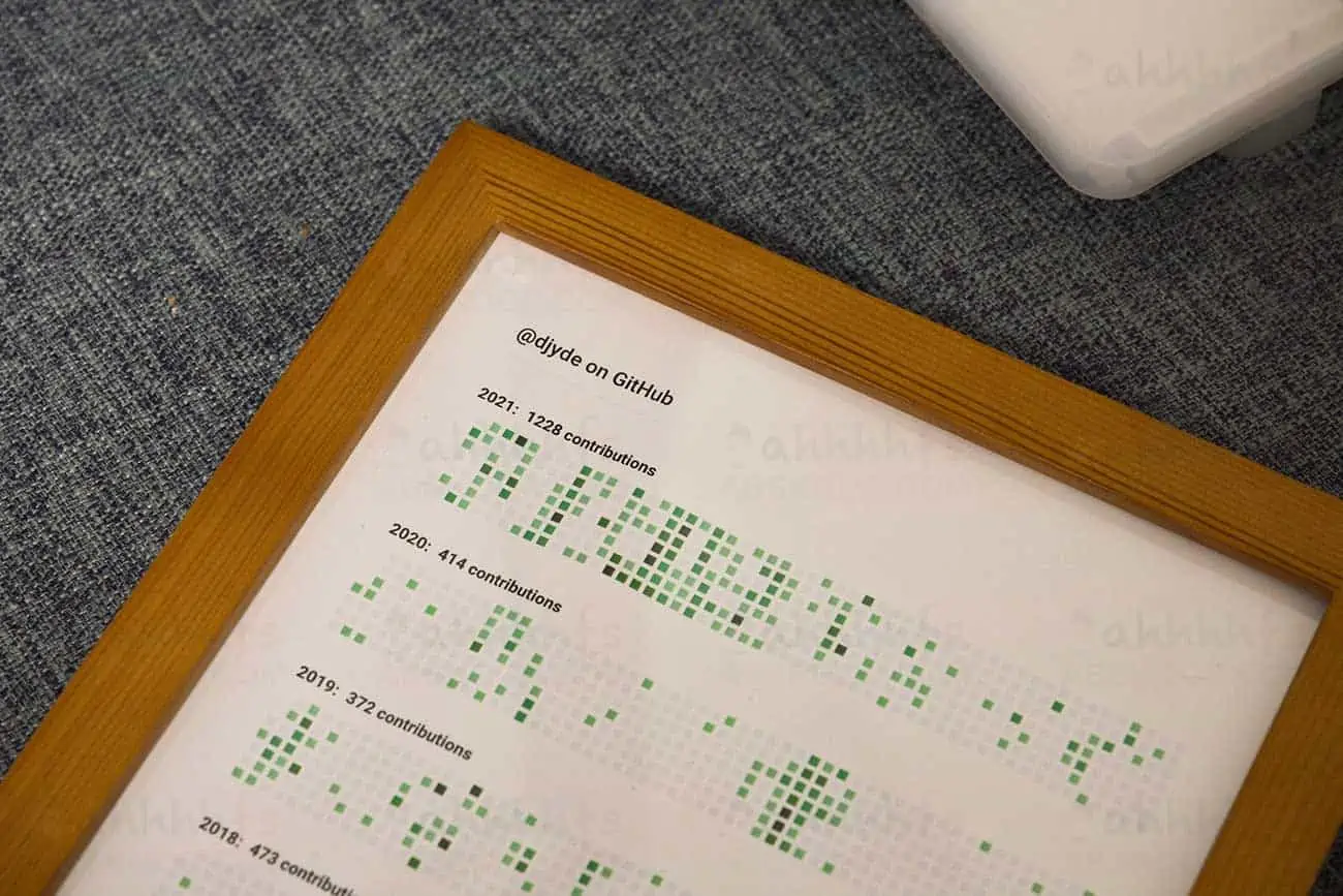OSSArt是个开源的在线工具,可以用GitHub上任何用户名,生成该用户一个近6年的贡献图,并通过浏览器的打印选项打印到A4纸上,你可以自己买相框包起来做摆件。
