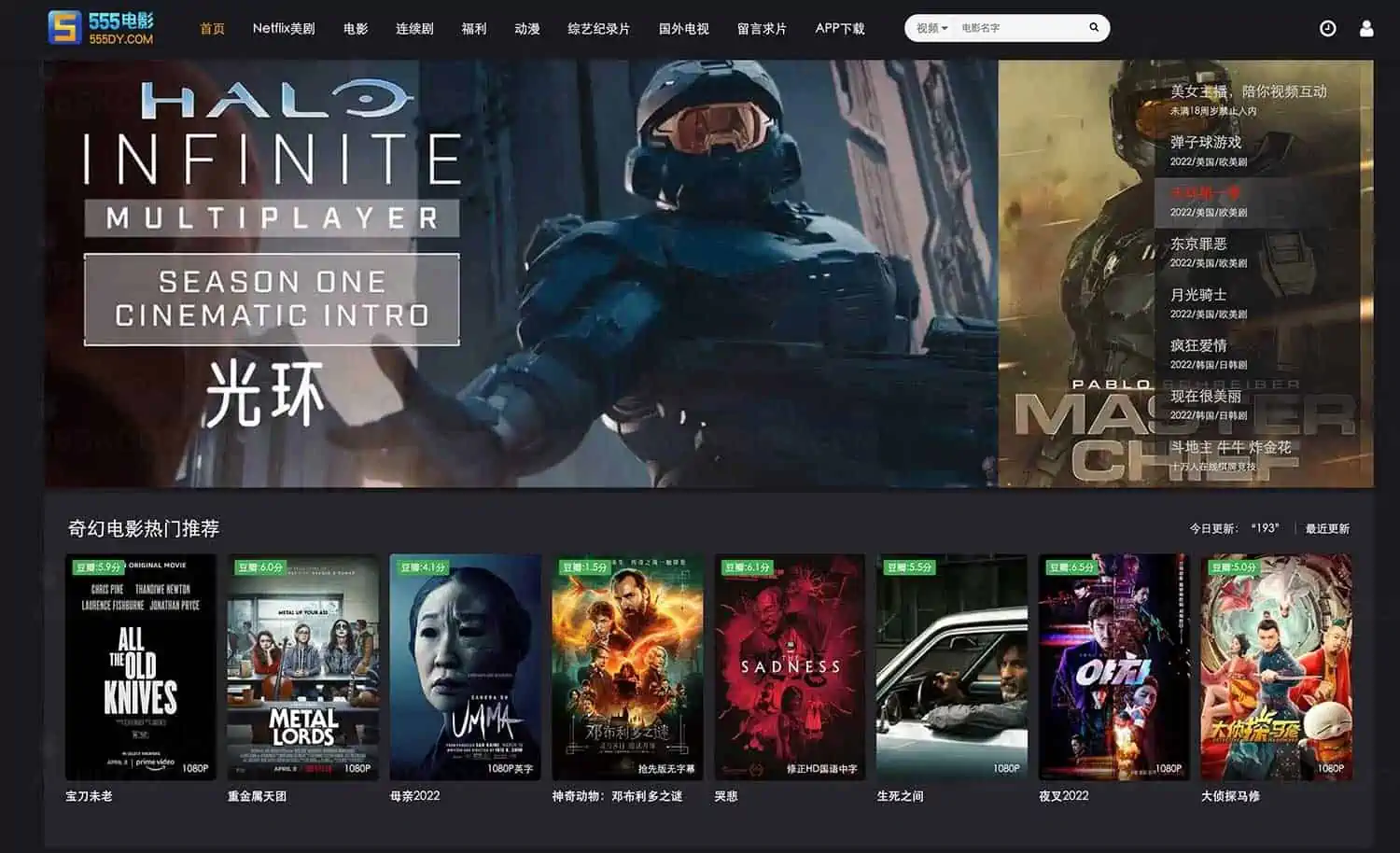 555电影网,一个免费的跨平台追剧神器(影视网站),收录了全球众多的热门影视资源,电视剧、美剧、日韩剧、电影、综艺、动漫纪录片,还支持国内外的电视直播。555电影网收录更新快,就连最近热门新出的的哭悲、光环、月光骑士资源都有,资源加载超快的,观看无需注册登录,并且影视里面好像没有啥澳门广告啥的。